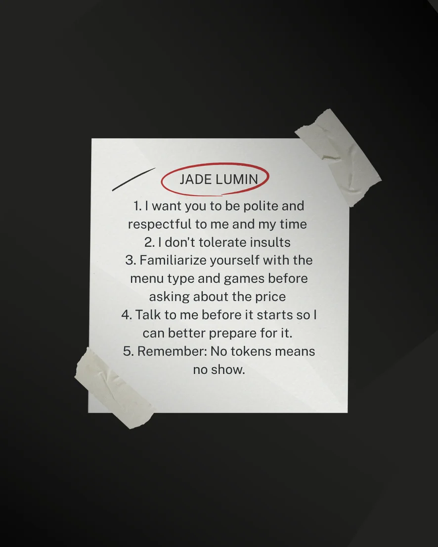 Pata de Camelo, Esperma na Cara, Tacões, Cowgirl, Twerking, Palmadas, Show de óleo, Massagem, hot dance, slap ass, doggy, Saia acima, Fetiche por Pés, Canzana, Ahegao, dildo its extra, Dança Erótica, Striptease, Masturbação, Fingering, Brinquedos Sexuais, Sentar na Cara, Garganta funda, Dildo ou Vibrador, Orgasmo